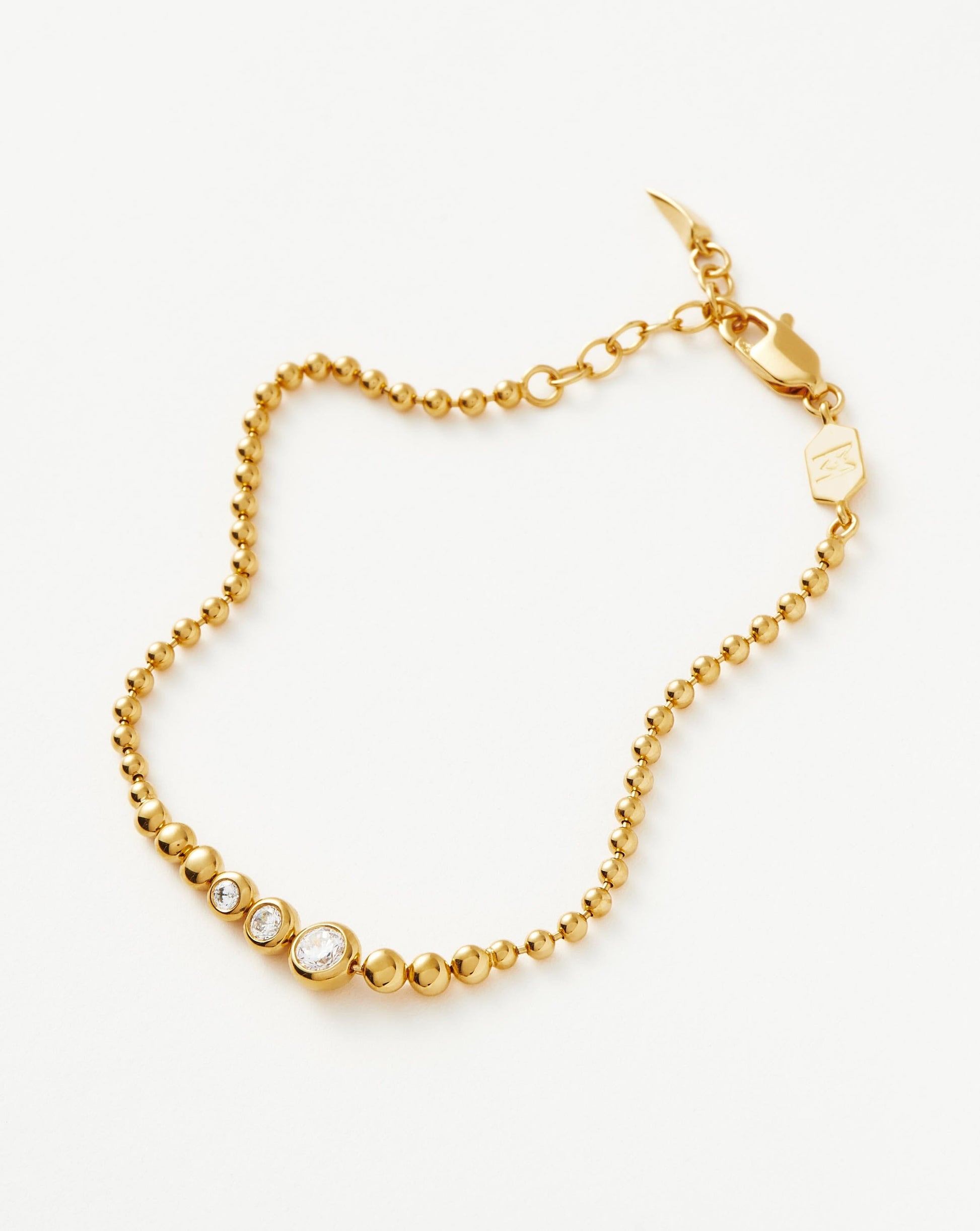 This tennis-style bracelet features graduated beaded detailing and rounded white cubic zirconia stones to instantly upgrade your arm stack. Wear solo or team with chunky styles for more of a maximalist look.