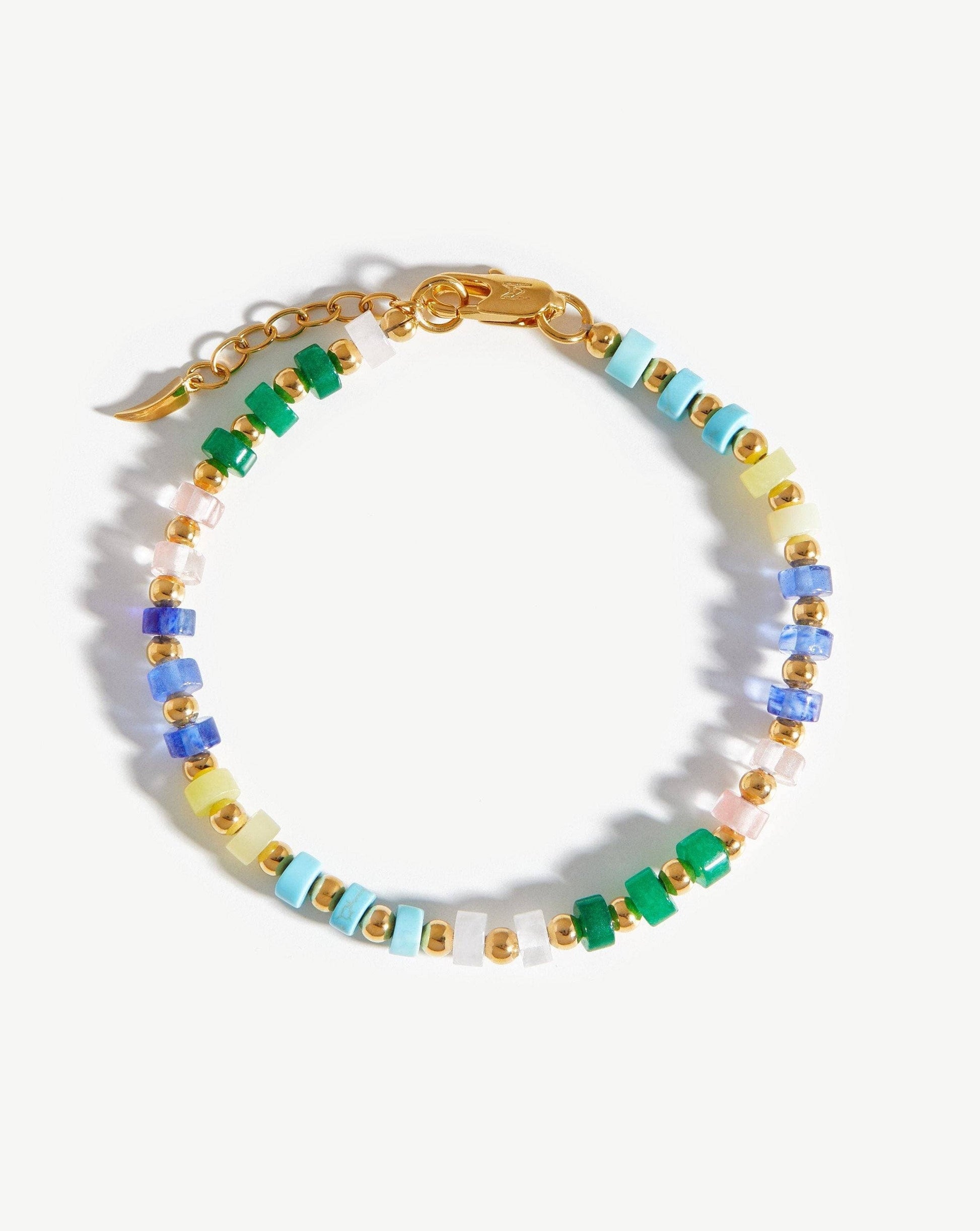 A kaleidoscope of colour to express yourself with. This bracelet features a vibrant mix of multi-coloured stones that are contrasted and offset with small gold beads for a distinctive finish. Wear solo, layer with more beaded styles or stack with one of our signature chunky chains.