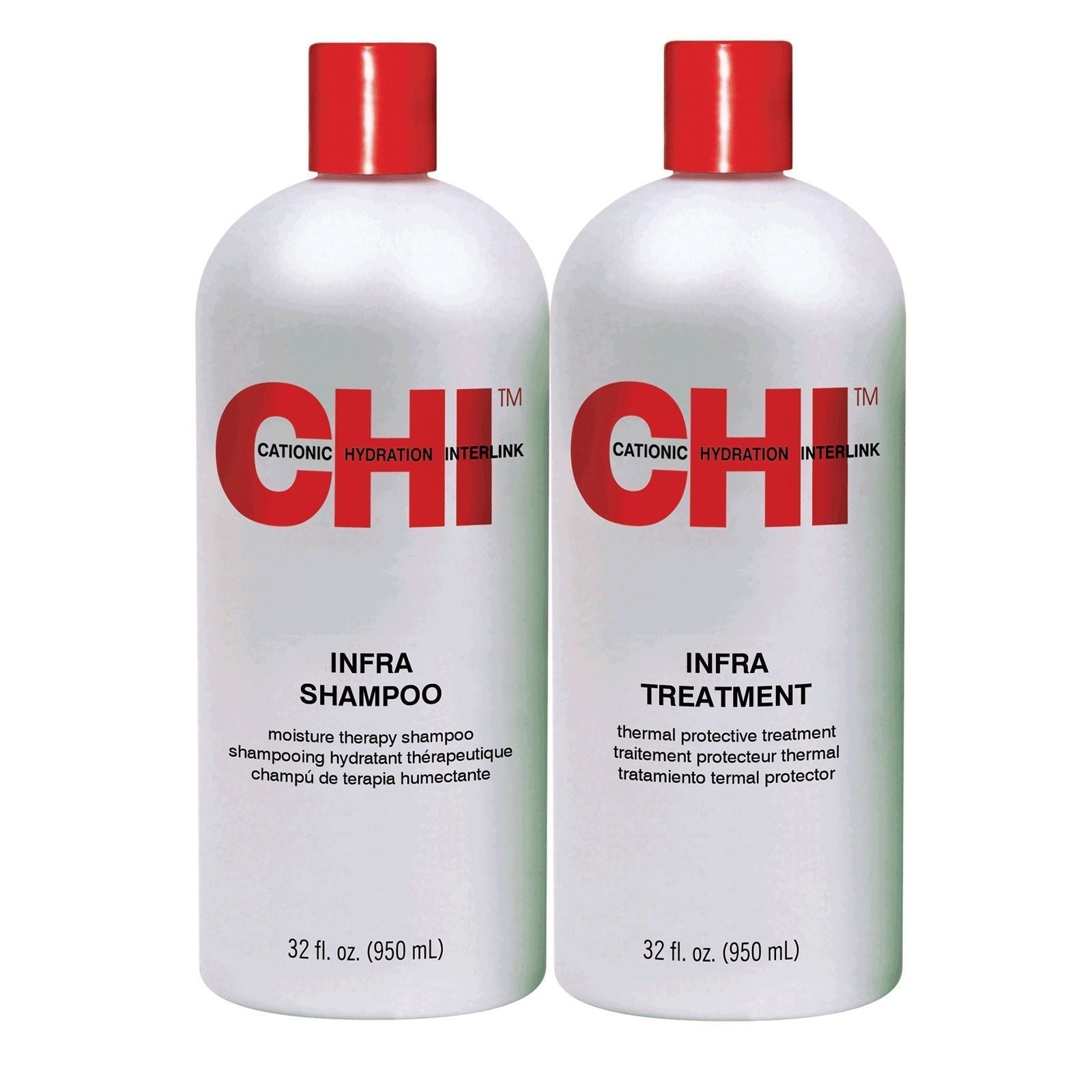 CHI Infra Shampoo provides moisture therapy for dry, damaged hair while it gently cleanses and strengthens it. The CHI Infra Shampoo strengthens the hair with proteins and balances the hair's moisture for softness using Cationic Hydration Interlink. CHI Infra Shampoo is gentle enough to use daily.