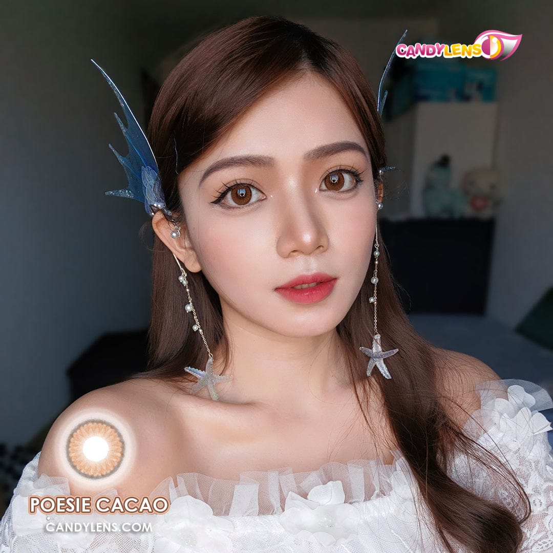The Poesie Cacao lenses are also designed to be comfortable and easy to wear. The lenses are made from high-quality materials that allow for plenty of oxygen flow to your eyes, ensuring that your eyes remain healthy and comfortable throughout the day. The lenses are also easy to insert and remove, making them perfect for those who are new to wearing contact lenses.