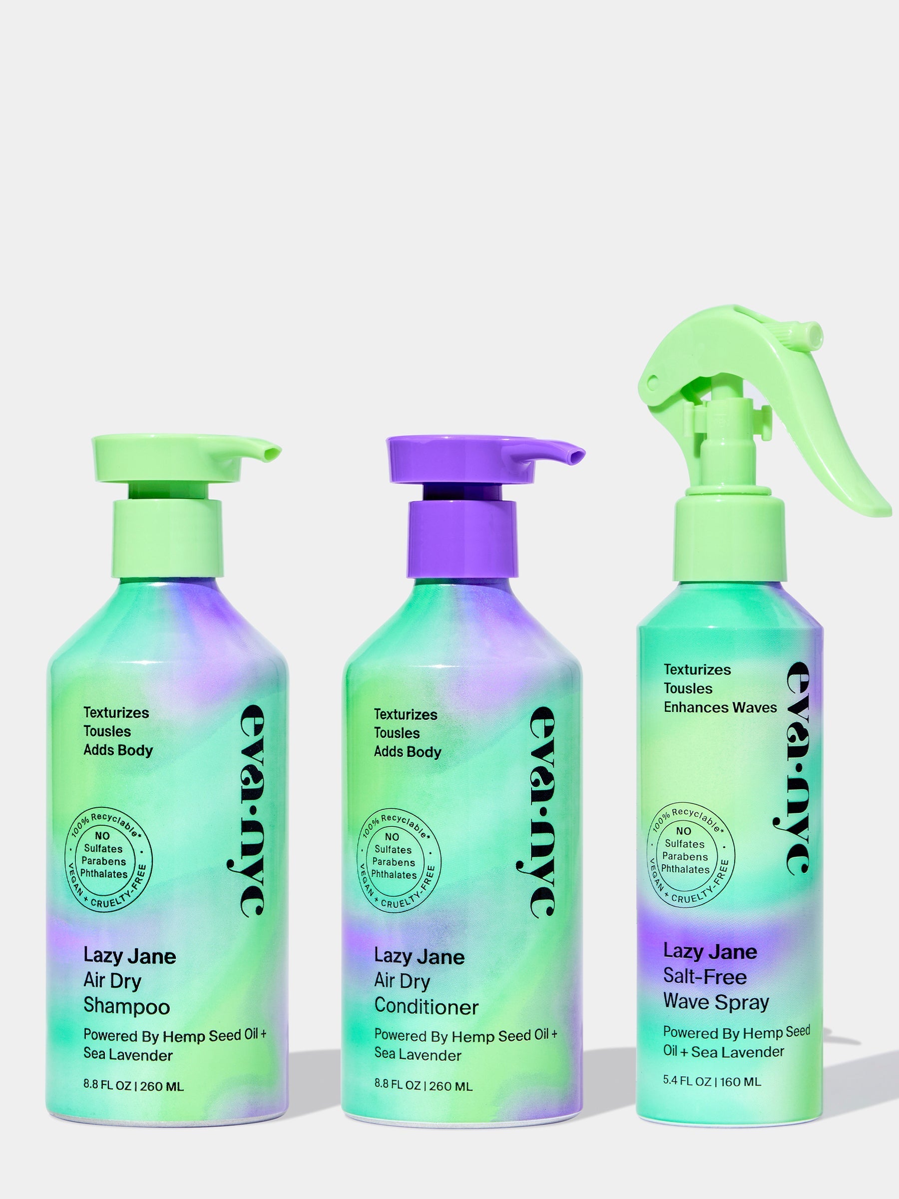 I'm a set featuring 3 favorites from the Lazy Jane Air Dry Collection! I deliver easygoing, air-dried hair perfection for a heat-free styling routine and beachy waves. I'll provide you with everything you need to achieve an effortless, perfectly undone look that's never trying too hard. Embrace your hair's natural movement with me!