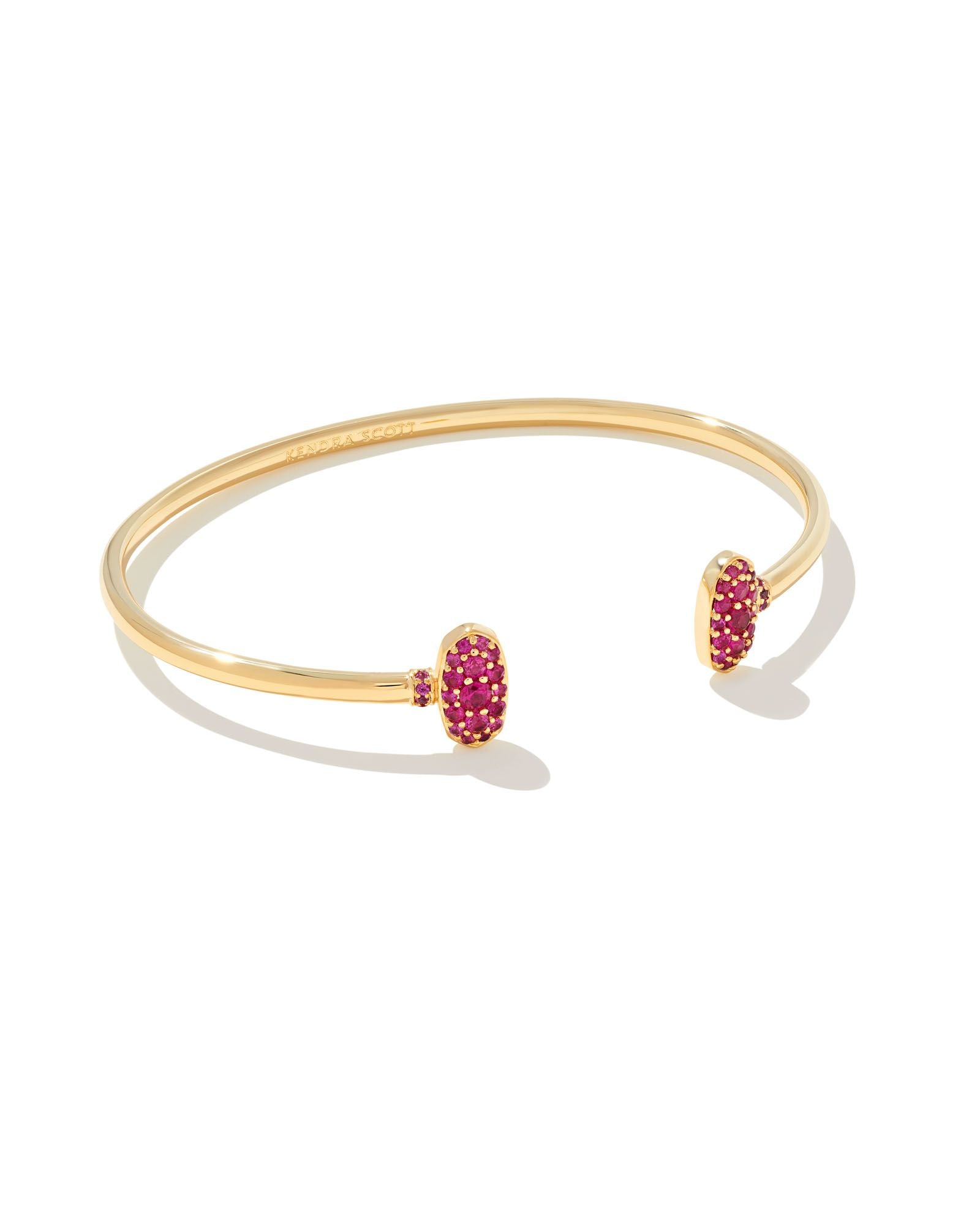 Bookended by shine, the Grayson Gold Crystal Cuff Bracelet in Ruby Crystal is a minimalist piece with maximum sparkle. Tiny crystals adorn Kendra Scott's signature oval shape to create a beautiful adjustable bracelet that’s sure to capture everyone’s attention.