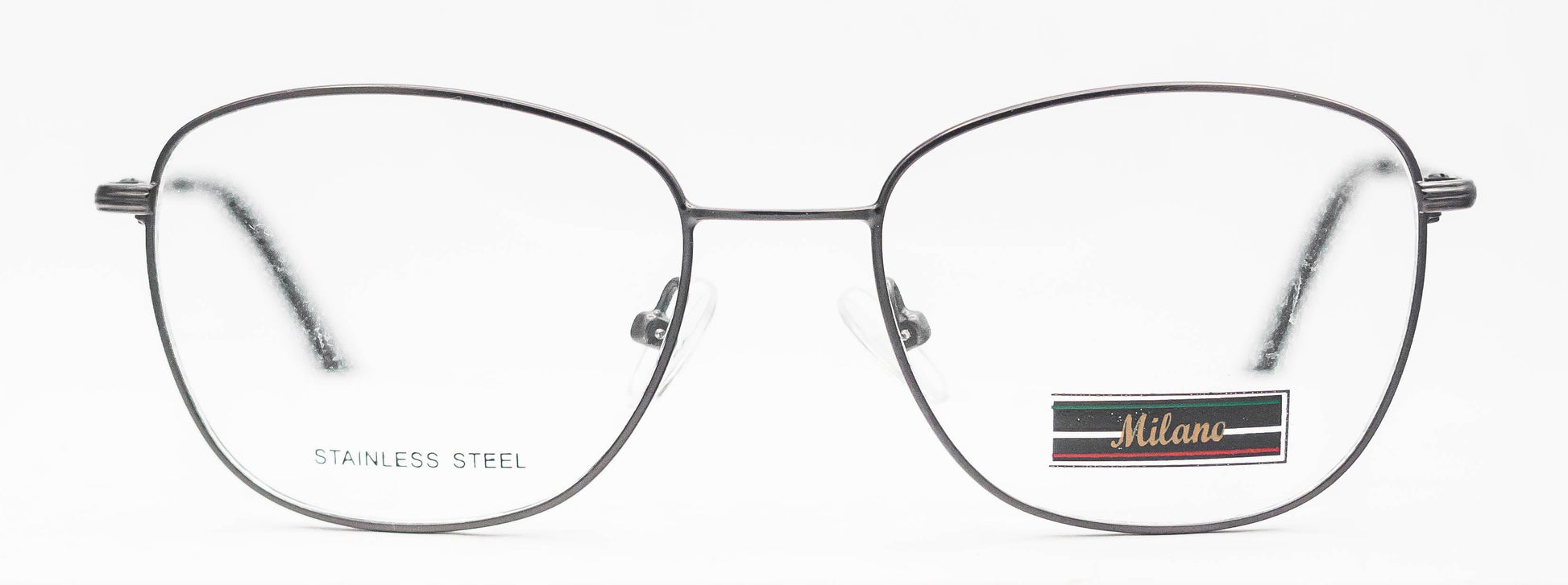 Sleek and simple, the Milano 8670 optical frame flaunts?stainless steel details of gunmetal to tell the story of its industrious roots. Finished with adjustable nose pads and a slim brow line, this classic shape emanates the finest of effortless luxury.