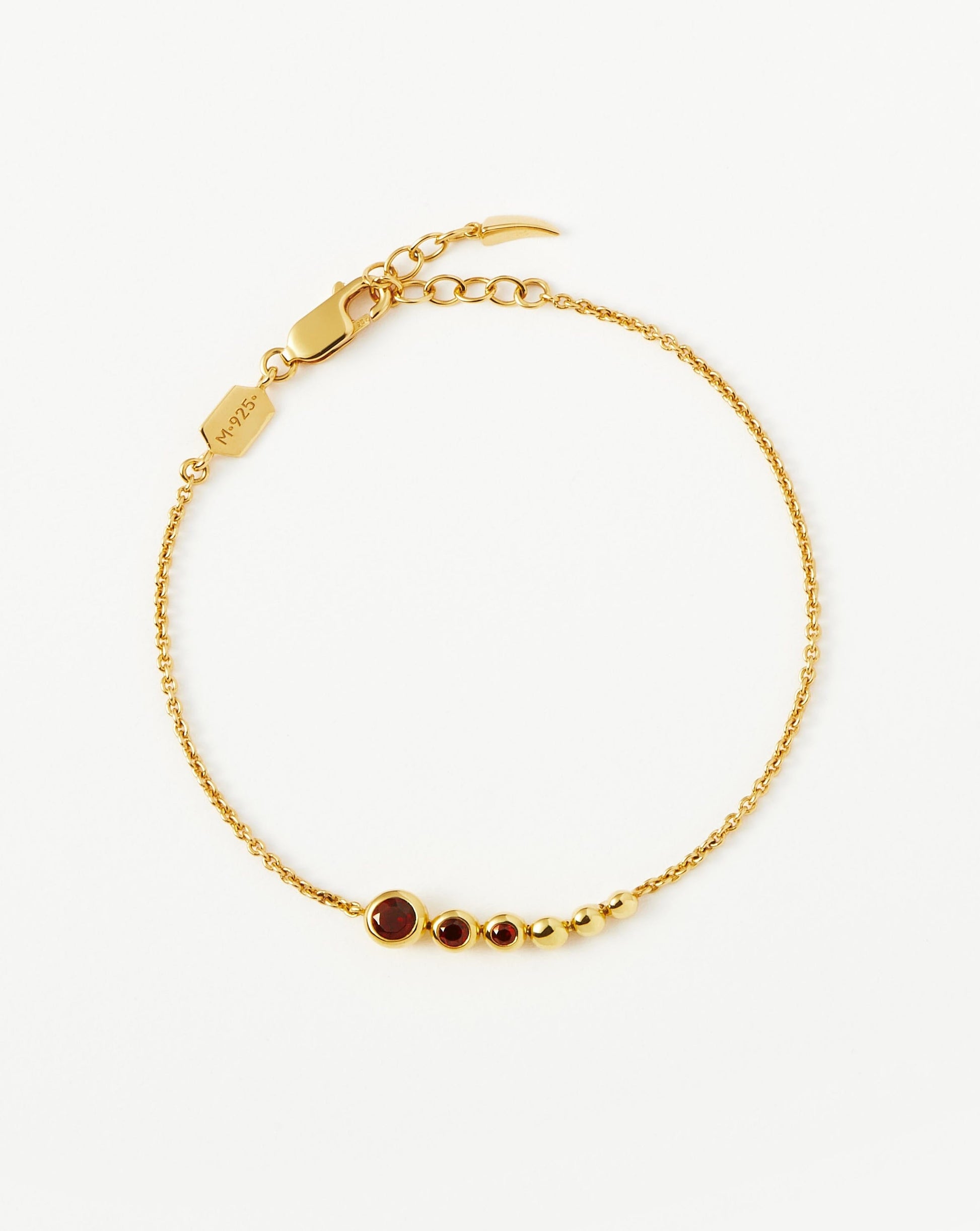 A new limited-edition meaningful style to celebrate the Year of the Dragon. This bracelet features a floating pendant with three red garnet beaded gemstones (a lucky number in Chinese culture) faceted to catch the light and set with gold beads. Red garnet is a 'heart' gemstone that is said to bring love, passion, affection, and courage. The colour red also signifies luck, good fortune and prosperity. Wear solo or stack with chain bracelets for a bolder look.