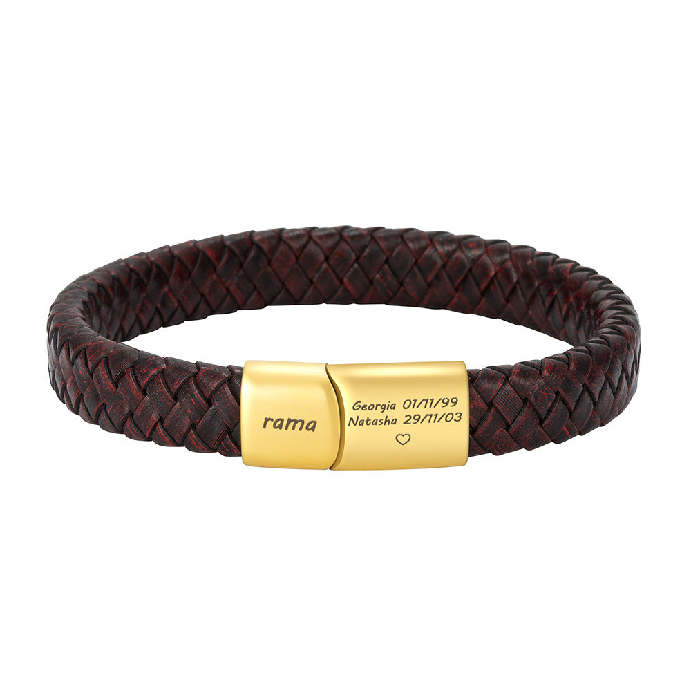 Color: Burgundy Bracelet Gold Beads + Lettering Content